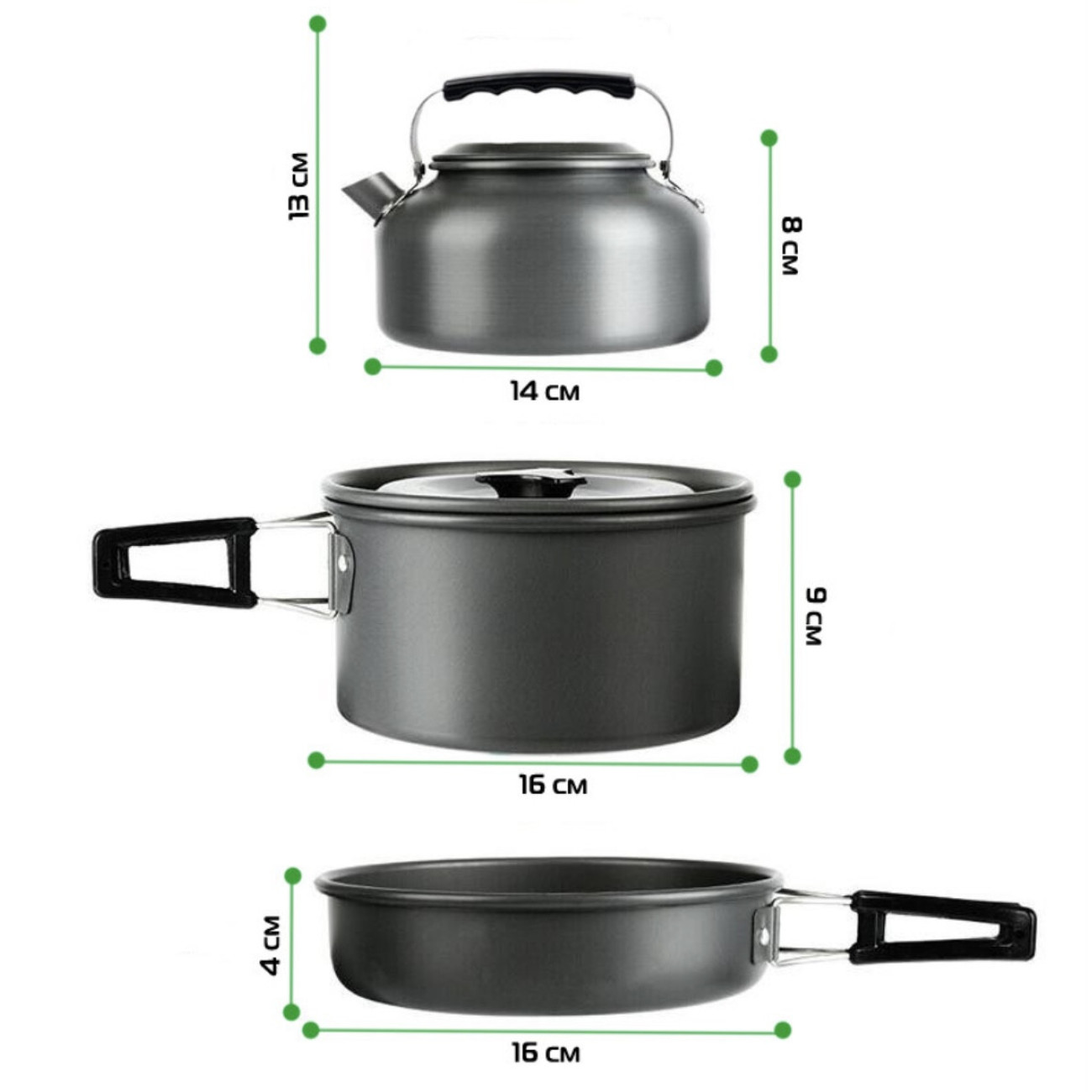 Питання та відповіді (FAQ) Алюмінієвий туритичний набір посуду (каструлі, сковорідка, чайник, столове приладдя) GL-С31 (20)