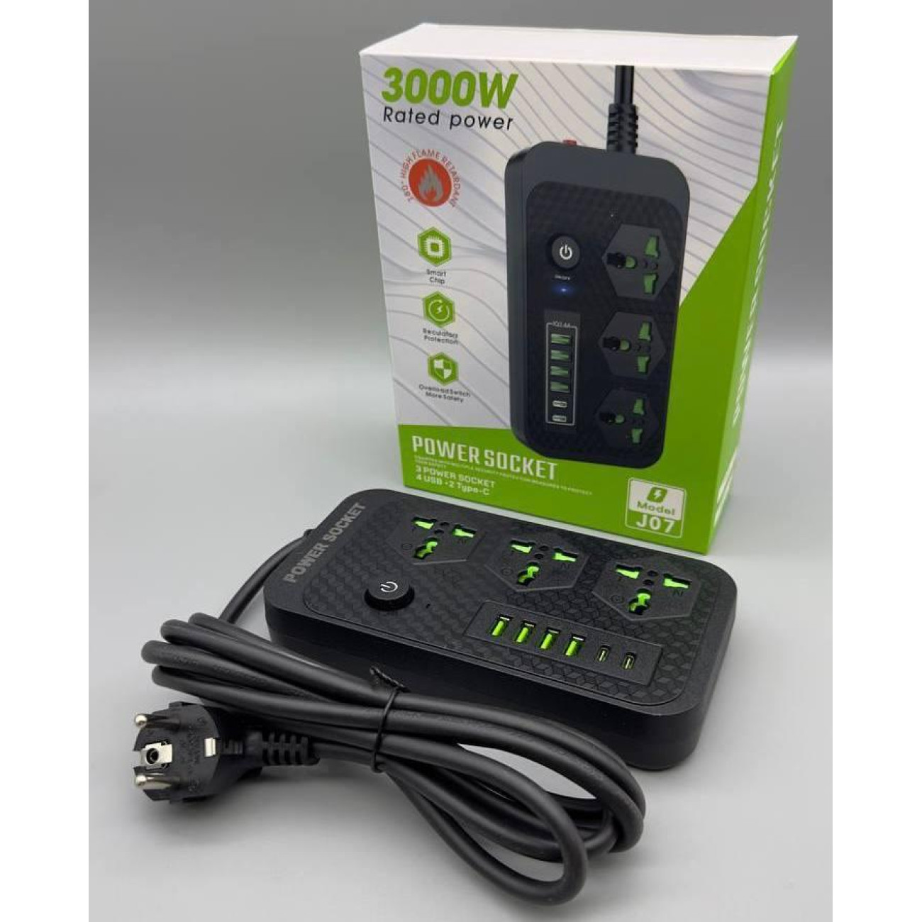 Опис Мережевий фільтр J07 3000 W (3*220V+4USB+2*Type-C)